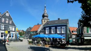 Es macht Spaß, den einzelnen Gassen folgend, durch den Ort zu schlendern. Hinter jeder Ecke tut sich ein neuer malerischer Anblick auf, immer begleitet vom barocken Turm der alten Stadtkirche, die schon seit dem Mittelalter eine Station auf dem Jakobsweg war. Damals war Lennep, neben Wipperfürth, Ratingen und Düsseldorf, eine der vier Hauptstädte des Bergischen Landes und wurde im 13. Jahrhundert Mitglied der Hanse.