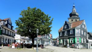 Wenn Sie durch Lennep spazieren, ist es wie einem Open Air Museum. Der ganze Ort besteht aus den typisch Bergischen Häusern, mit ihren schieferbeschlagenen Fassaden. Die Gassen folgen immer noch dem mittelalterlichen Rundling rund um die Evangelische Stadtkirche. Dieses Stadtbild ist in Deutschland schon sehr selten. In NRW zählen zum Beispiel Köln und Lennep dazu. Solch einen geschlossenen historischen Ortskern, der so gut wie lückenlos erhalten, und perfekt gepflegt ist, gibt Ihrer Rast sicher einen bleibenden Eindruck.