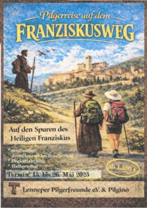 In diesem Jahr geht es vom 15. Mai 2026 bis 26. Mai 2026 auf den Franziskusweg in Italien, von Rieti nach Assisi. Wie immer mit unserem Pilgerreisen-Veranstalter Pilgino. Bald mehr..